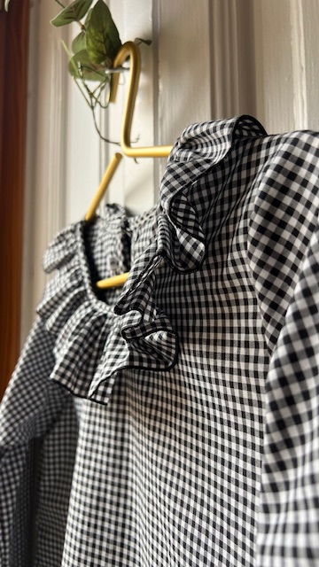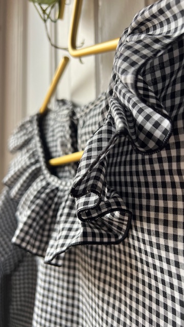 Cuello bebé y manga larga. Muy ponible y muy ideal para las lovers del vichy.