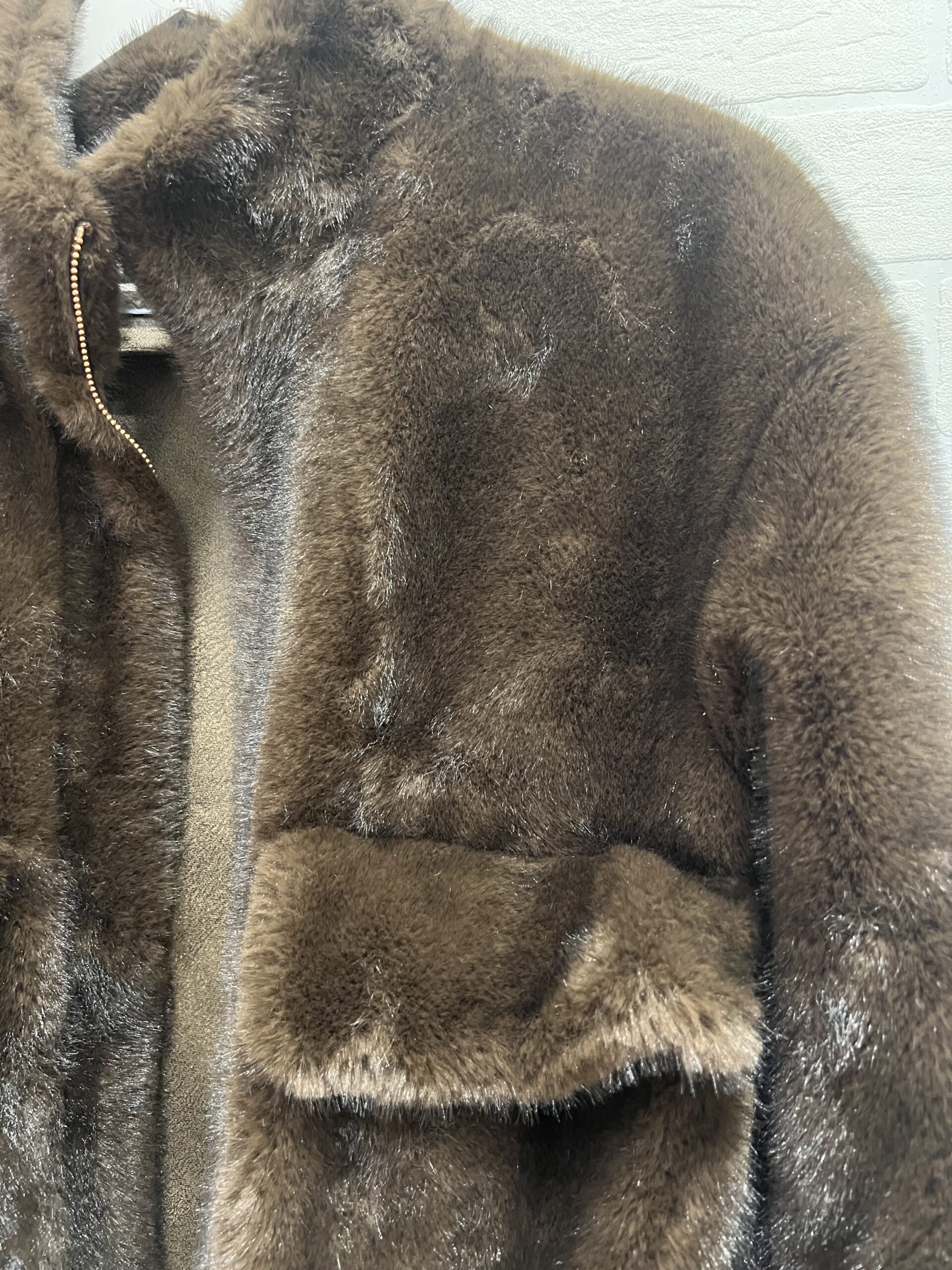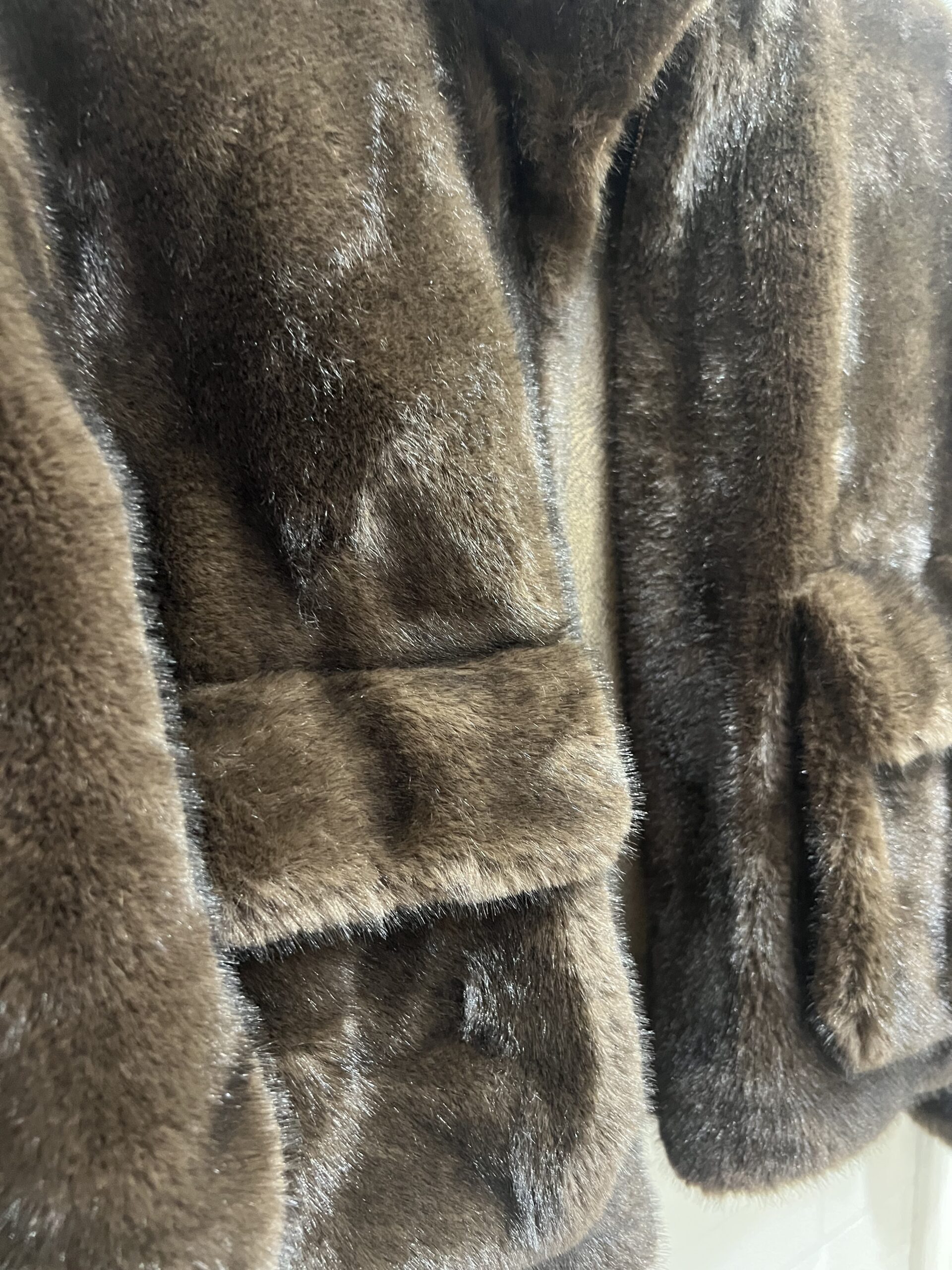 Un chaquetón ideal de pelo sintético en marrón chocolate.