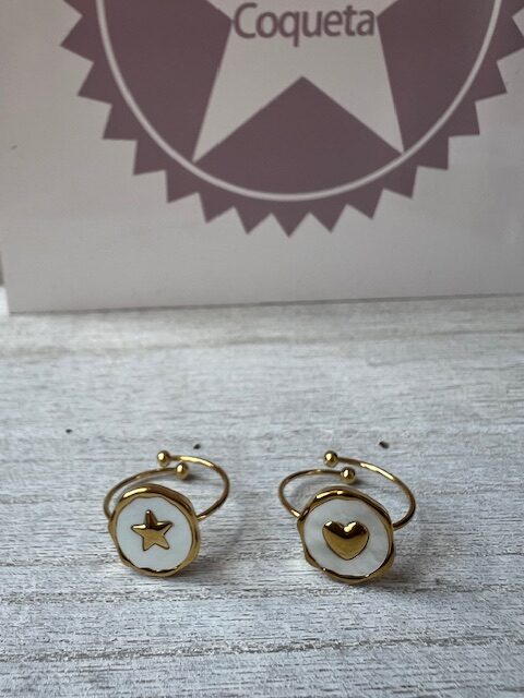 Unos anillos ideales esmaltados y ajustables con dos significados una estrella y un corazón.