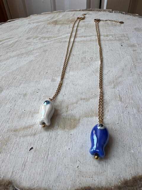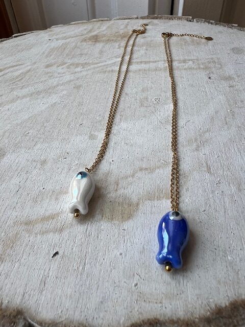Unos collarcitos ideales en blanco y azul verano con cadena para no quitarse en todo el verano.
