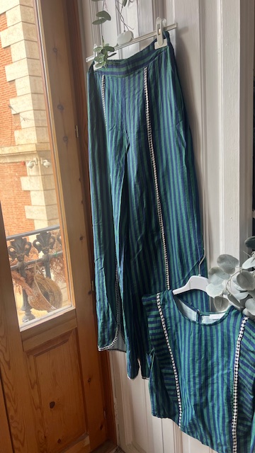 Un conjunto dos piezas ideal con pantalones con detalle en empeine abierto.